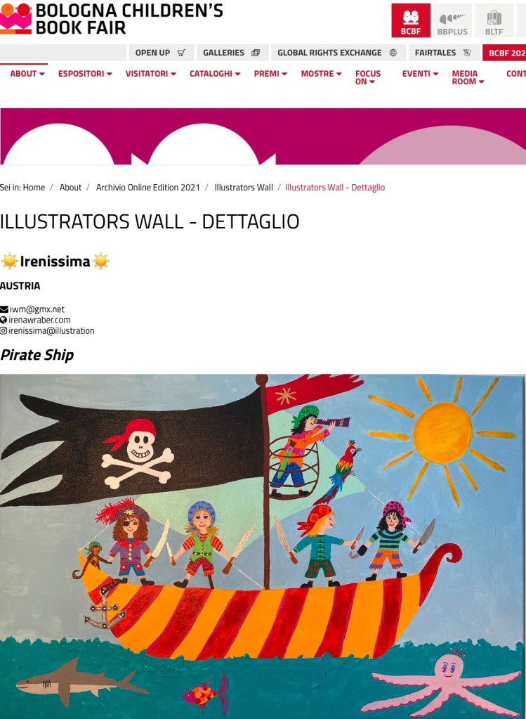 NEWS 2025 My Comte D’Artagnan ❤️ on the Virtual Illustrators Wall at Bologna Children’s Book Fair 2025 2024 The Bologna Children’s Bookfair 2024 and my Pinocchio ♥️ on the Virtual Illustrators Wall 2023 And just like that ☀️ my Pippi Longstocking on the Virtual Illustrators Wall at Bologna Children’s Book Fair, 6-9 March 2023 2022 Happy ❤️ My cheerful little pirates on the Illustrators Wall at Bologna Children’s Book Fair 2022 2021 Just wonderful ❤️ to be part of Bologna Children‘s Book Fair 2021 – Online Edition – Illustrators Wall – A 120-Day Show